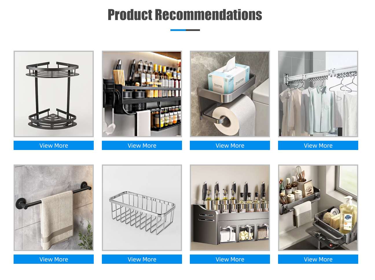 Ana ürünler:Banyo depolama rafı, mutfak rafları, kapının arkasında kanca, paspas klipsi